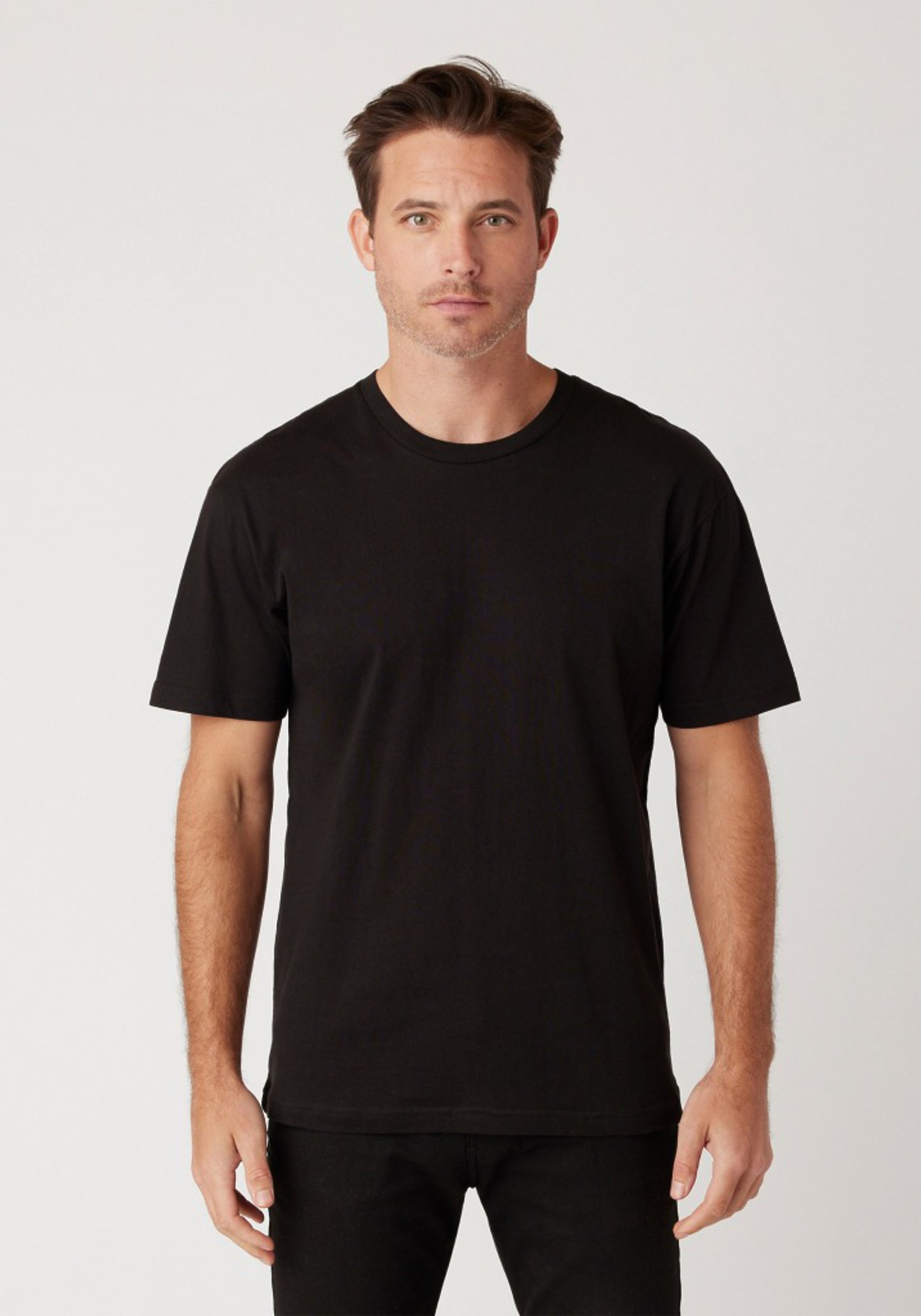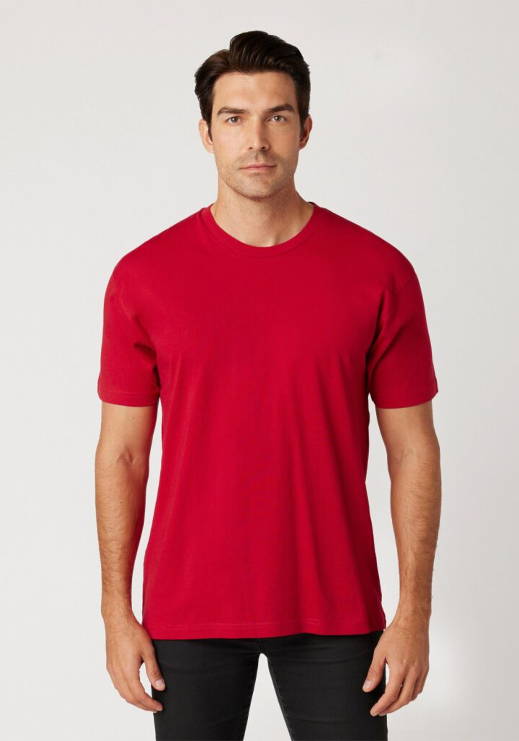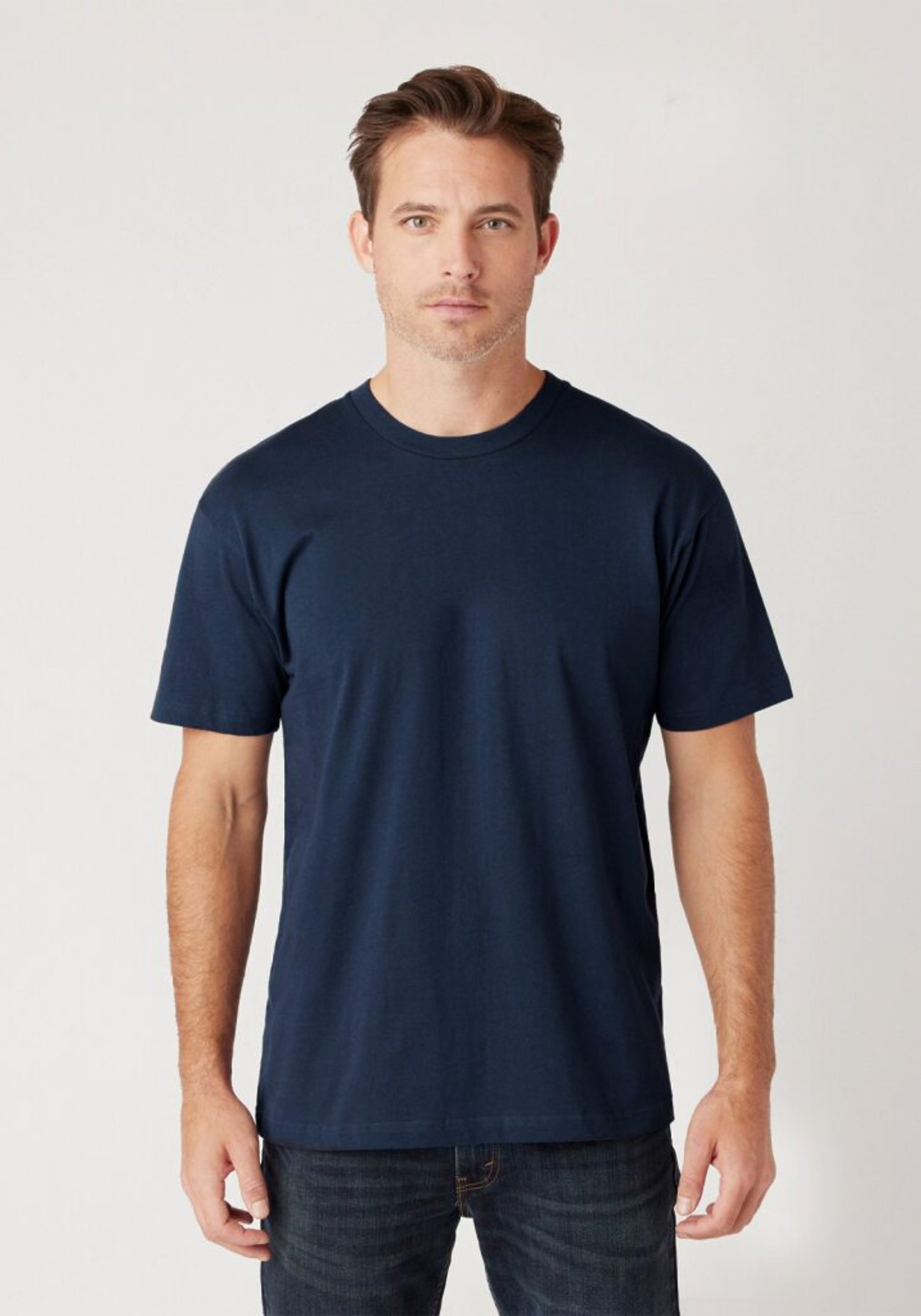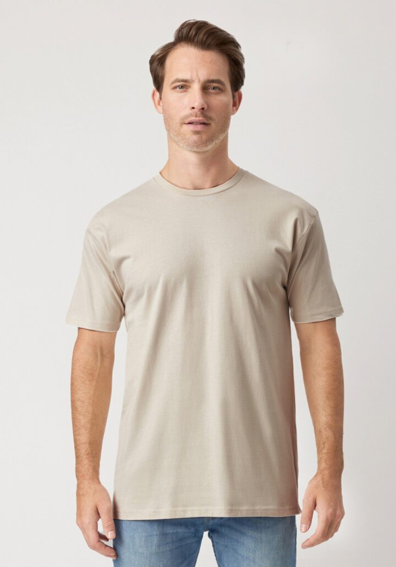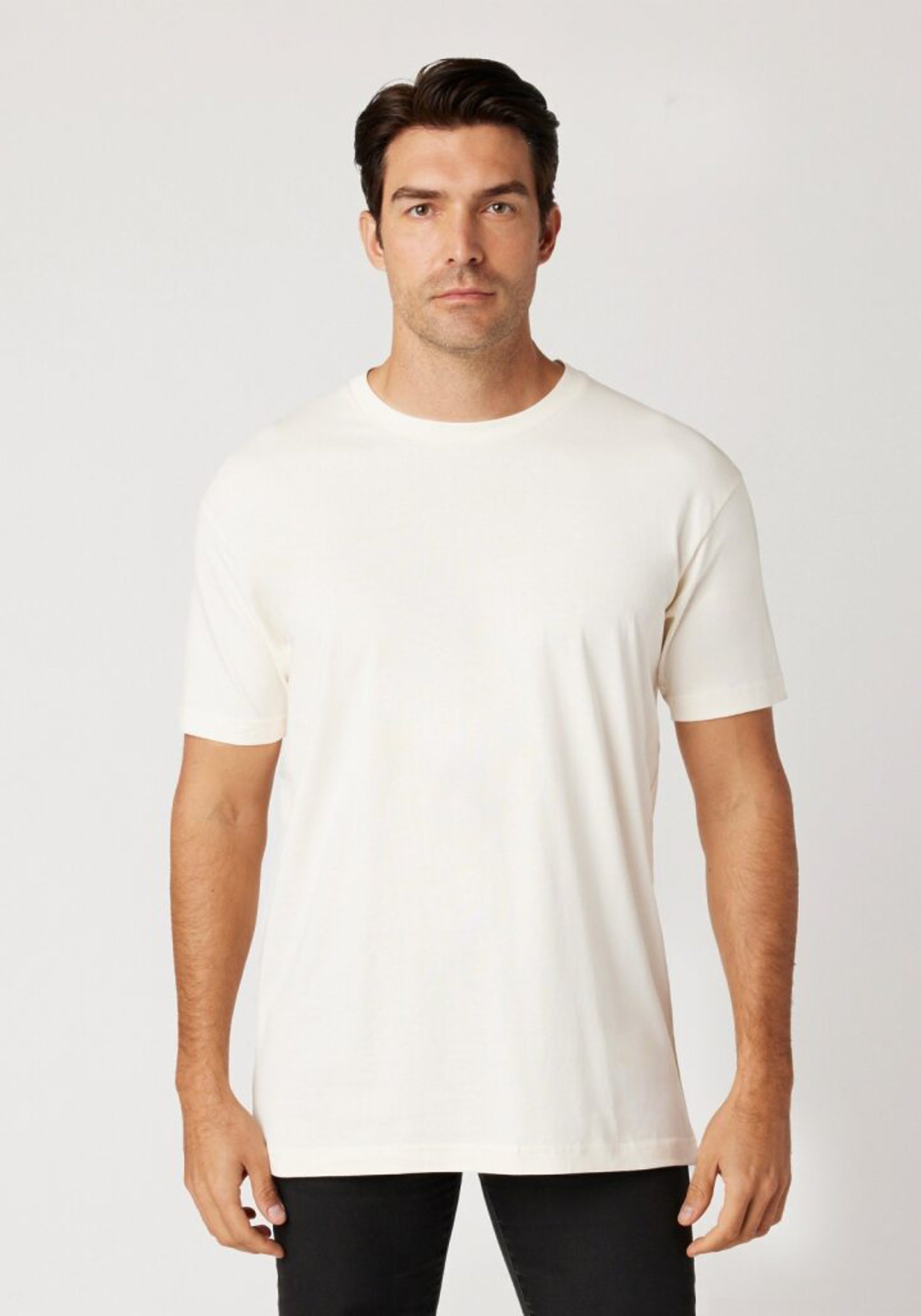 Unisex, mid-weight, crew neck, standard fit, soft hand, 1” folded double-needle hems, reinforced neck-rib with a single-needle topstitch, sustainable fiber blend, smooth surface for superior printability.